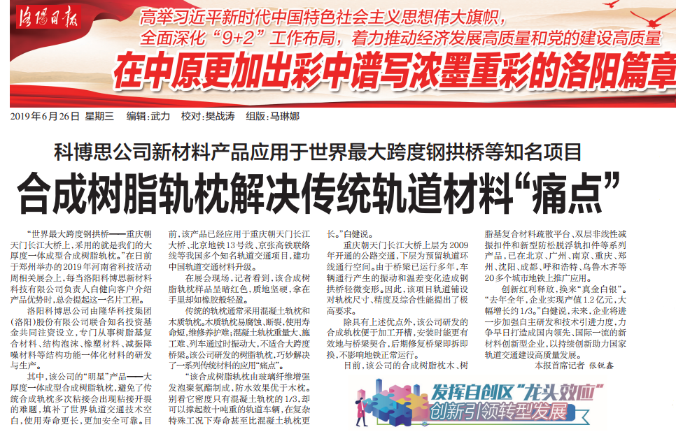 官宣:合成樹脂軌枕解決傳統(tǒng)軌道材料“痛點(diǎn)”-----洛陽科博思新材料科技有限公司接受《洛陽日報(bào)》專訪