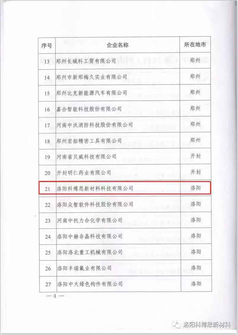 洛陽科博思新材料科技有限公司獲批河南省企業(yè)技術(shù)中心認(rèn)定