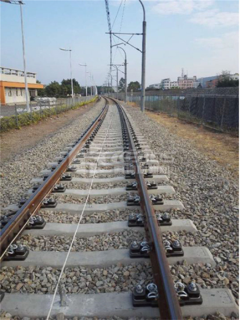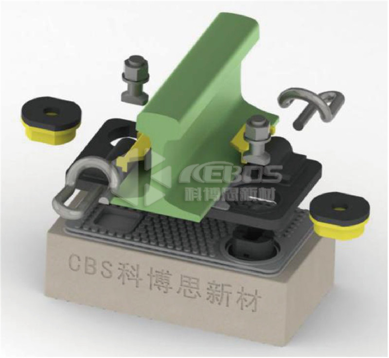 預(yù)埋式雙層非線性減振扣件主要由預(yù)埋鐵座、中間橡膠墊板、鐵墊板、軌下橡膠墊板以及彈條系統(tǒng)等組 成,屬于中等減振扣件范疇,具有優(yōu)異的動(dòng)態(tài)減振性能,相較于普通彈性分開式扣件減振達(dá)8dB以上, 可廣泛地應(yīng)用于城市軌道交通線路中。